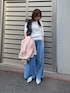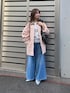 本日は春カラーのカバーオールでデニムコーデを組んでみました! オーバーサイズのカバーオールは襟元の配色が可愛く、ウエストは内側の紐で絞ってメリハリ付けることができます✨春色のアイテムで優しめピンクが可愛いアイテムです! 中のトップスはパターンメッシュヘンリーネックニットです!着心地がもちもちしていて柔らかく、まだ朝や夜寒い時期にぴったりのニットトップスです!韓国っぽパターンメッシュ柄が今年らしく、可愛いトップスですよ♪ パンツは綿麻デニムイージーパンツです!毎年の大人気商品で、着てみるとびっくりなのが、とっっても柔らかいストレスフリーな履き心地です!デニム特有の硬さがなく、ワイドなシルエットで体型カバーしてくれる優れものです!私の身長でウエスト折ってます!