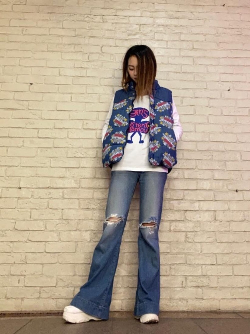 rairai(HYSTERIC GLAMOUR池袋パルコ店)のデニムパンツ「ローライズフレアデニムパンツ」を使ったコーディネート