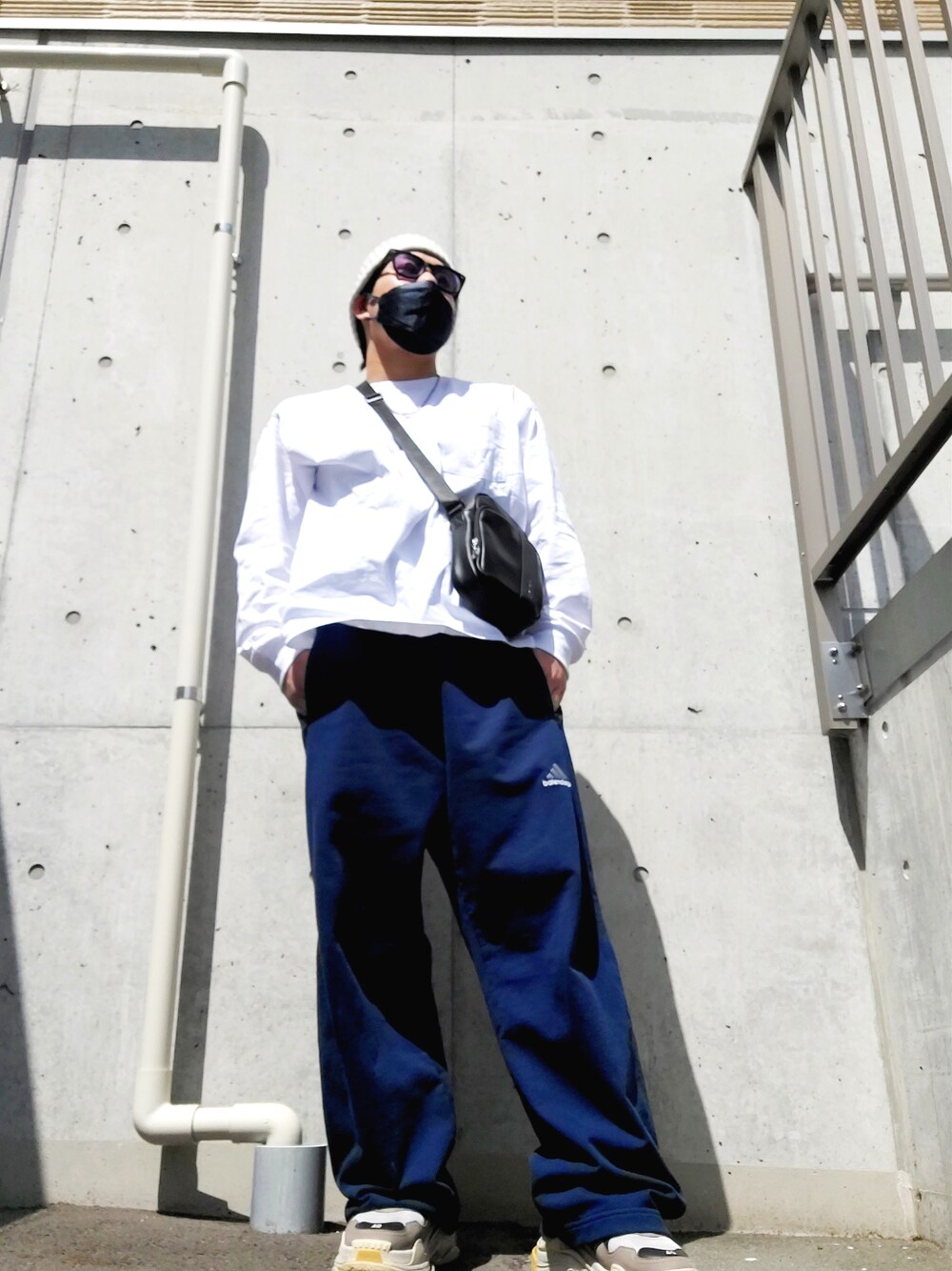 こんにちわ! ご覧頂きありがとうございますございます😊 シンプルにロンTとスウェットパンツのコーデです! GUのロンTは1枚でも決まるのでヘビロテしてますw スウェットパンツはBALENCIAGA×adidasのコラボアイテムでシルエットが綺麗だったので購入!シンプルなのでコーデが楽🤣 サングラスやニットキャップ、ミニバッグを取り入れてちょっとはオシャレに見えるかなwww