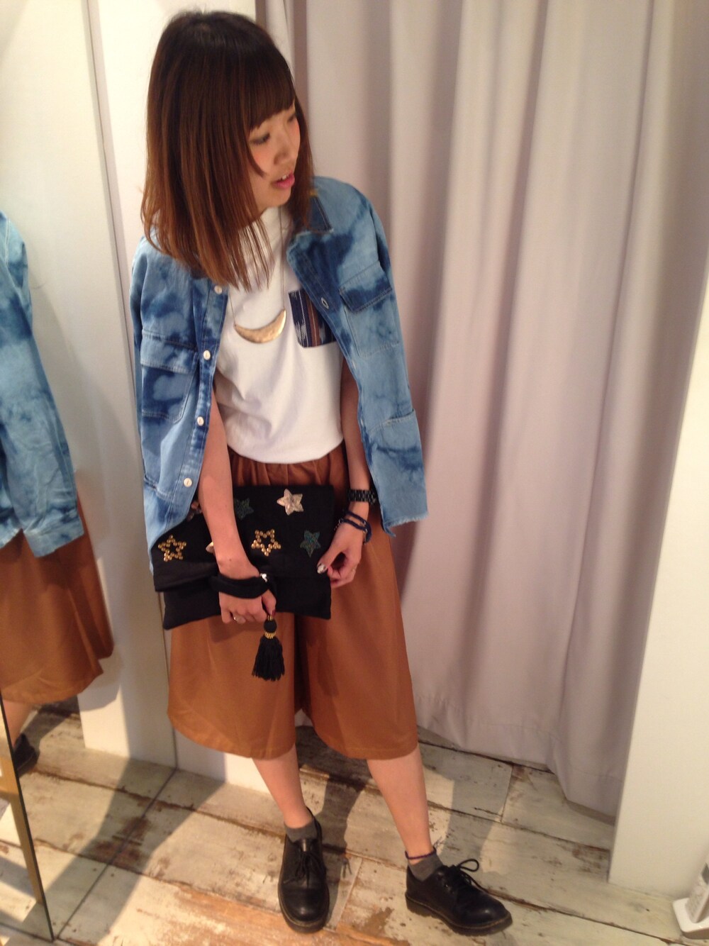 おはようございます。 皆様のいいね!SAVE! とても嬉しいです。泣 本当にありがとうございます!! これからも気に入りましたら お願い致します!!! では… やってみたかったシリーズ。 デニム肩かけスタイル← 普段リュックなので 中々肩かけができず、こちらでお披露目です。 デニムでなくとも 軽めな羽織りを肩かけでもオッケーですね。 ちなみに羽織ってるデニムシャツは、 1つ前のデニムシャツワンピの 色違い、形違いなんです(´v`) どっちもあー可愛い。 ではっっ