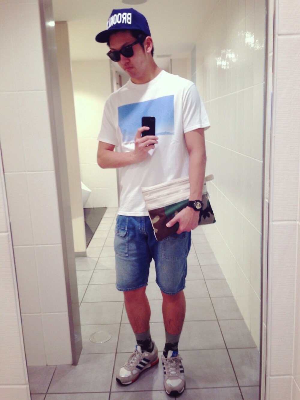 めっさ天気良かったので、 爽やか青系で〜 地味にクラッチとソックスが お揃いの柄🎵 いい天気だ〜