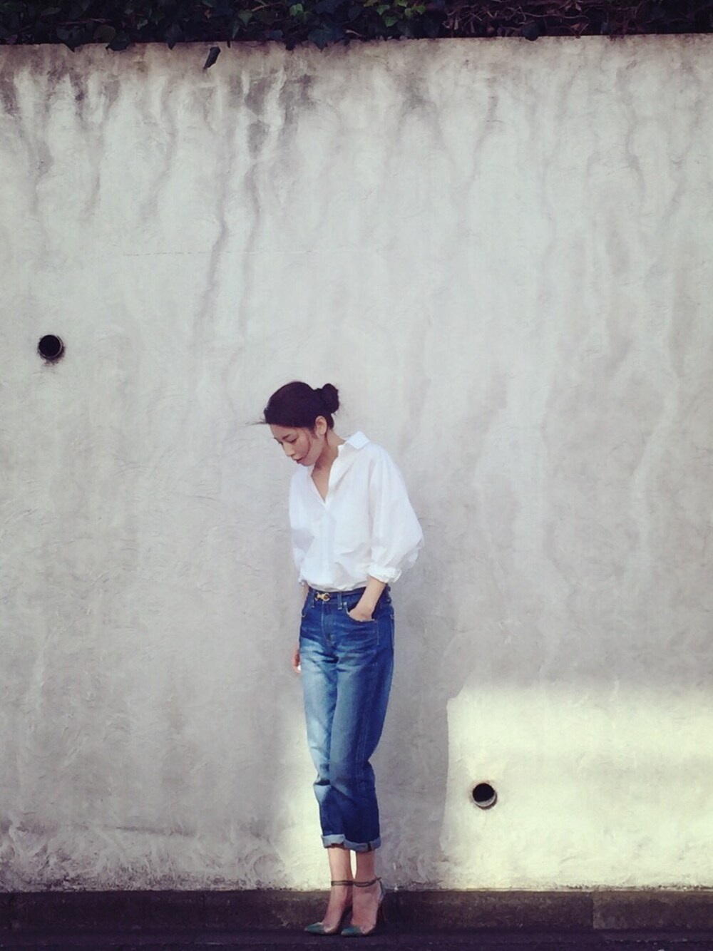 ボーイズデニムは白シャツと高めヒールで女っぽく❤︎