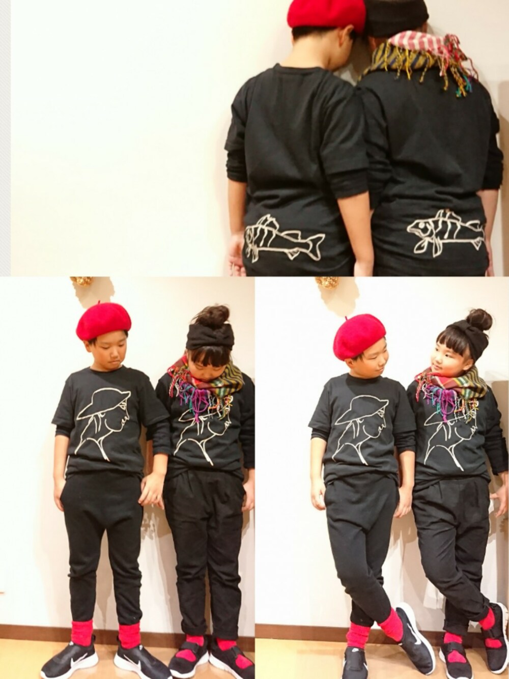 ブラックコーデ✨差し色に赤🍎 お尻の魚が可愛い💕 見ていただけて嬉しいですっ🤣💕