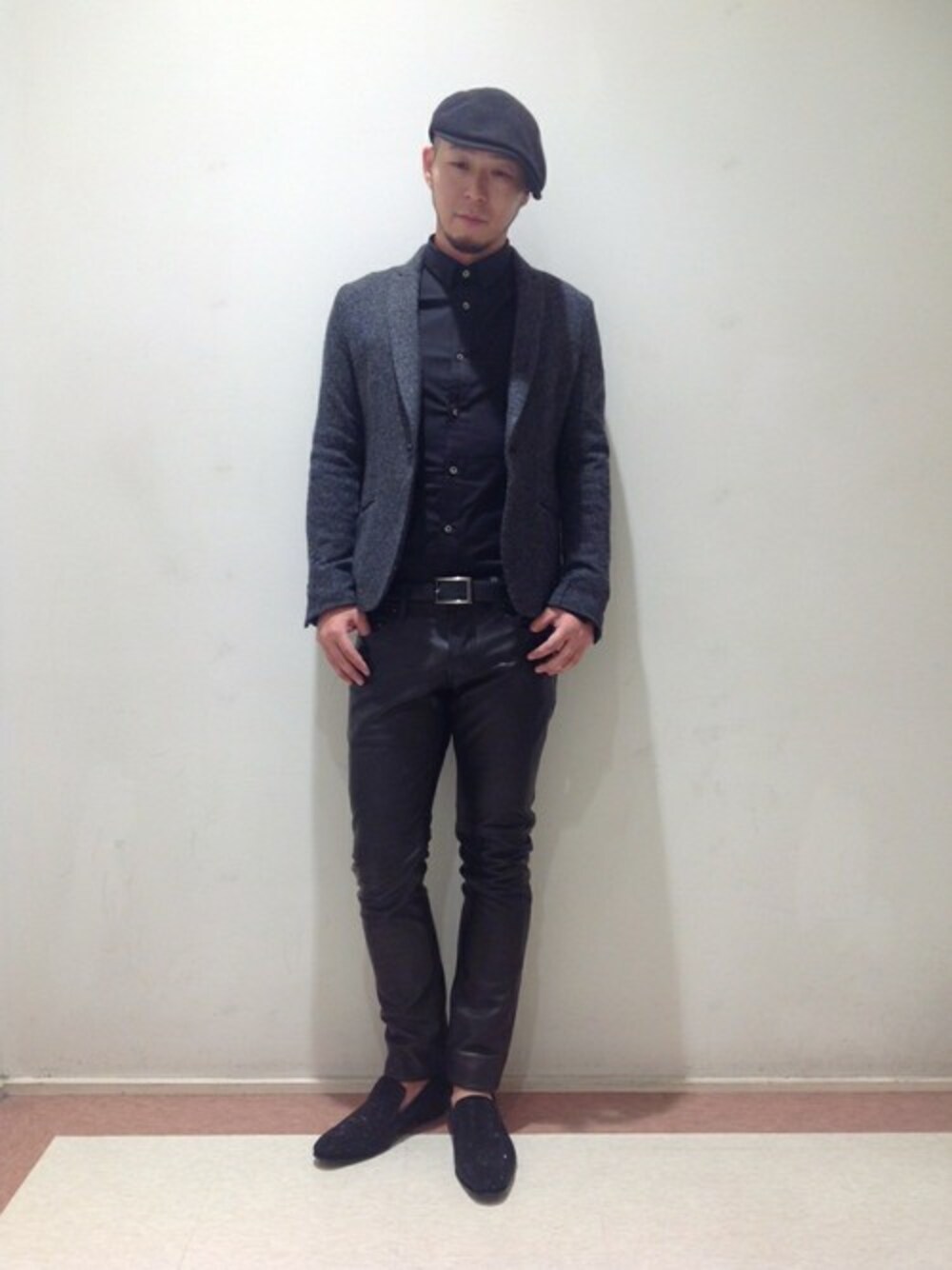 レザーパンツにウールのジャケットでキレイめにコーディネート。 固くなり過ぎず、合わせ易いです。