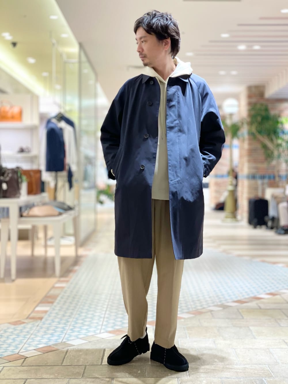 OMI(ABAHOUSE INTERNATIONAL Co. 本社スタッフ)のステンカラーコート「【玉虫ツイル】ステンカラーコート / スプリングコート」を使ったコーディネート
