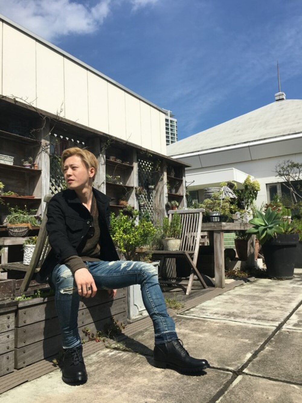 こんにちは! 今日も天気良くて最高ですね! 思わずお昼はコンビニで買って、外で食べました! 緑と土が大好き田舎育ちです。 ニットとGジャン、ダメージデニムとブーツを合わせた武骨なコーディネートです! アイテムが強いので、インナーのニットはパッチワークのものを選んで、柔らかい印象をプラスしました。 今度はお弁当でも作って、ピクニックにでも行きたいですね。 ではでは。