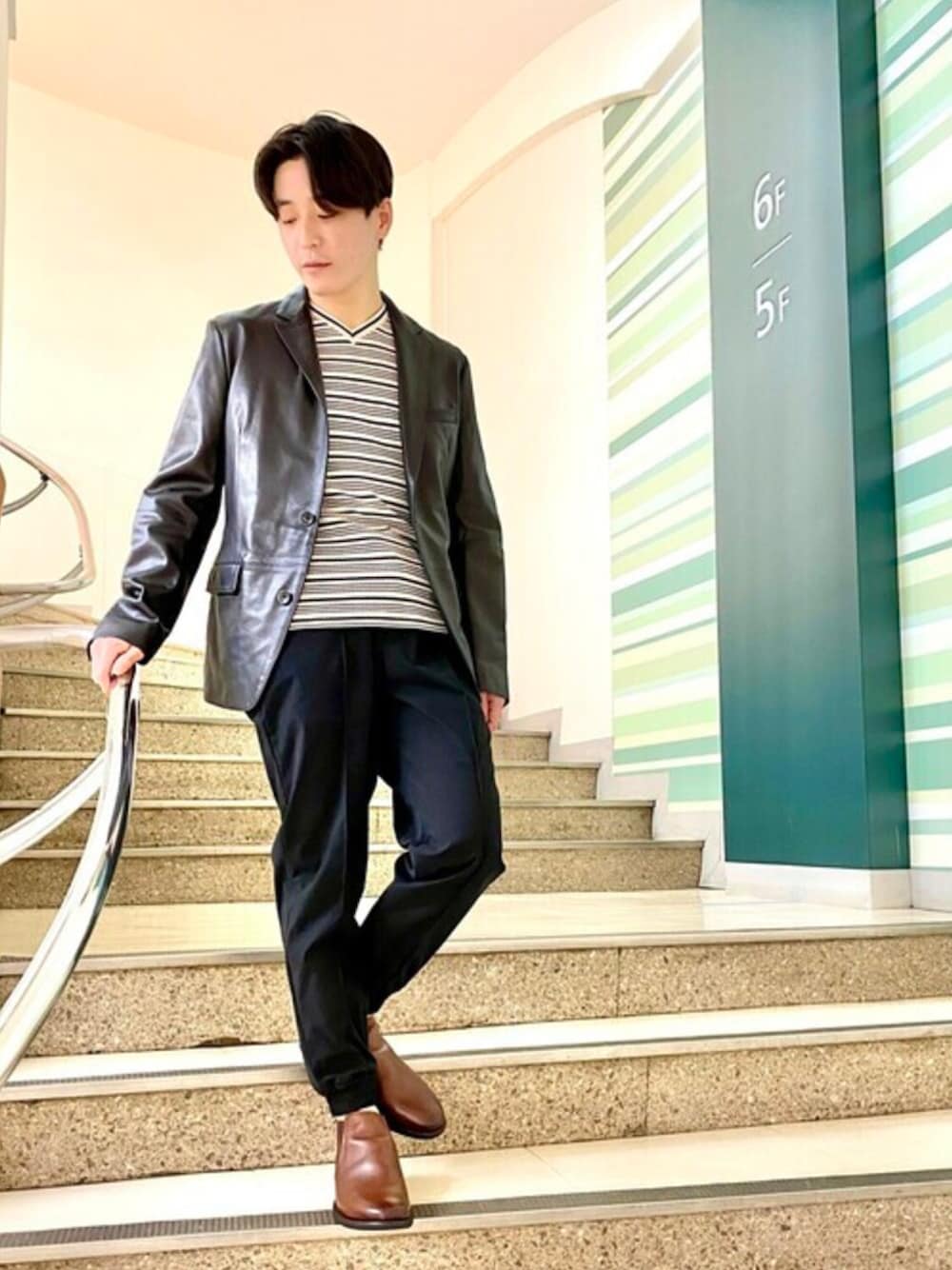 大澤 拓也(ルトリオ アバハウス アトレ川崎店(ABAHOUSE))のテーラードジャケット「2Bレザー ブレザージャケット」を使ったコーディネート