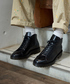 天候を意識したコーデ。 撥水機能の付いた機能性高いアウターにガラスレザーのブーツ。 テイストを合わせてカーキパンツでアウトドア風味を。