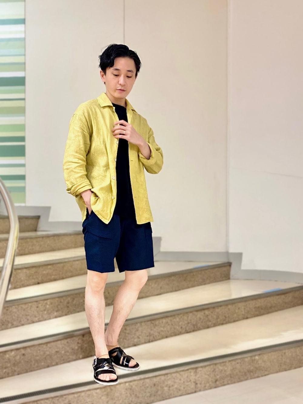 イエロー使ってリゾートスタイル! 他はモノトーンでまとめて大人しく!