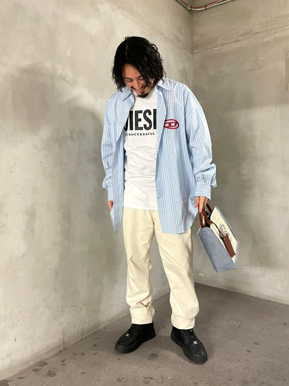 ENOmotoのスニーカー「メンズ Dクオーターロゴ レザー ミドルカットスニーカー」を使ったコーディネート