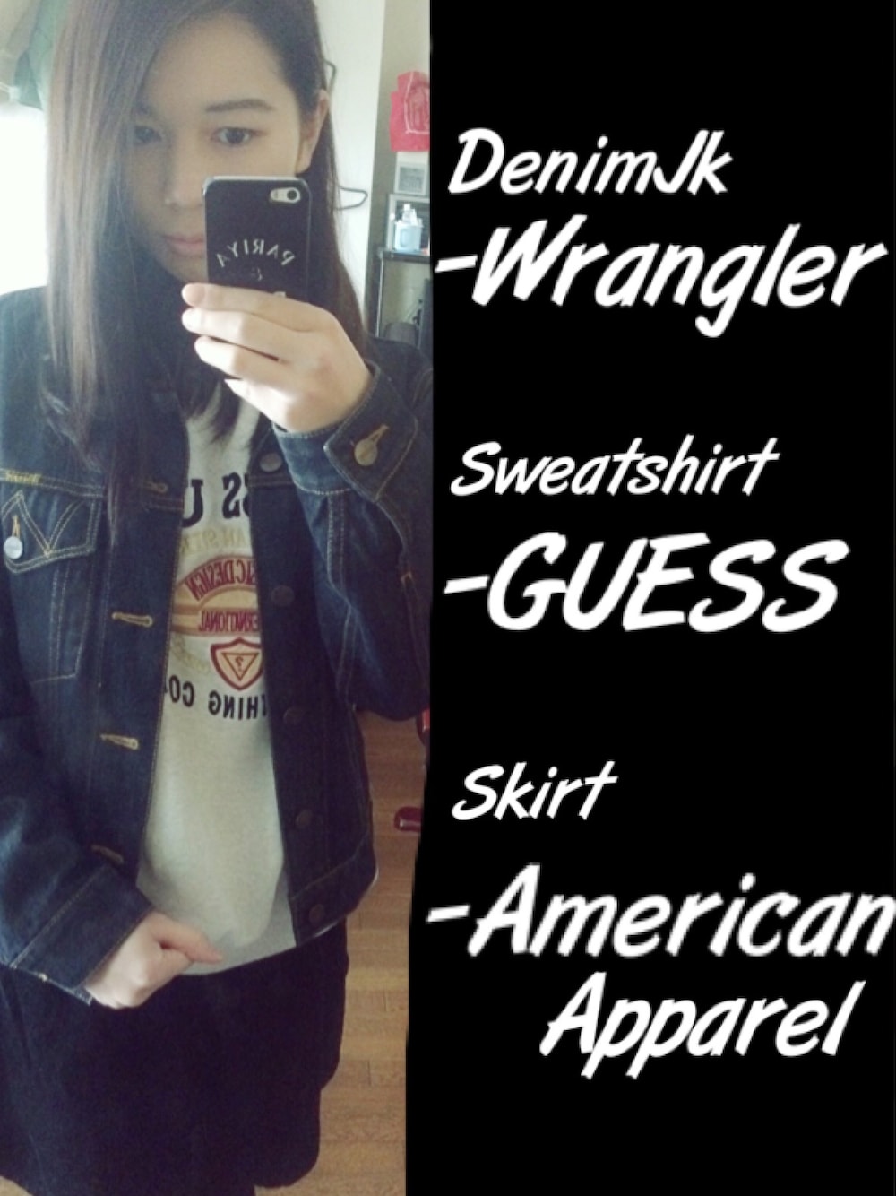 ジージャン ラングラー トレーナー ゲス スカート アメリカンアパレル 古着コーデになります 今日は暖かい…🌞 更新がんばりますので!
