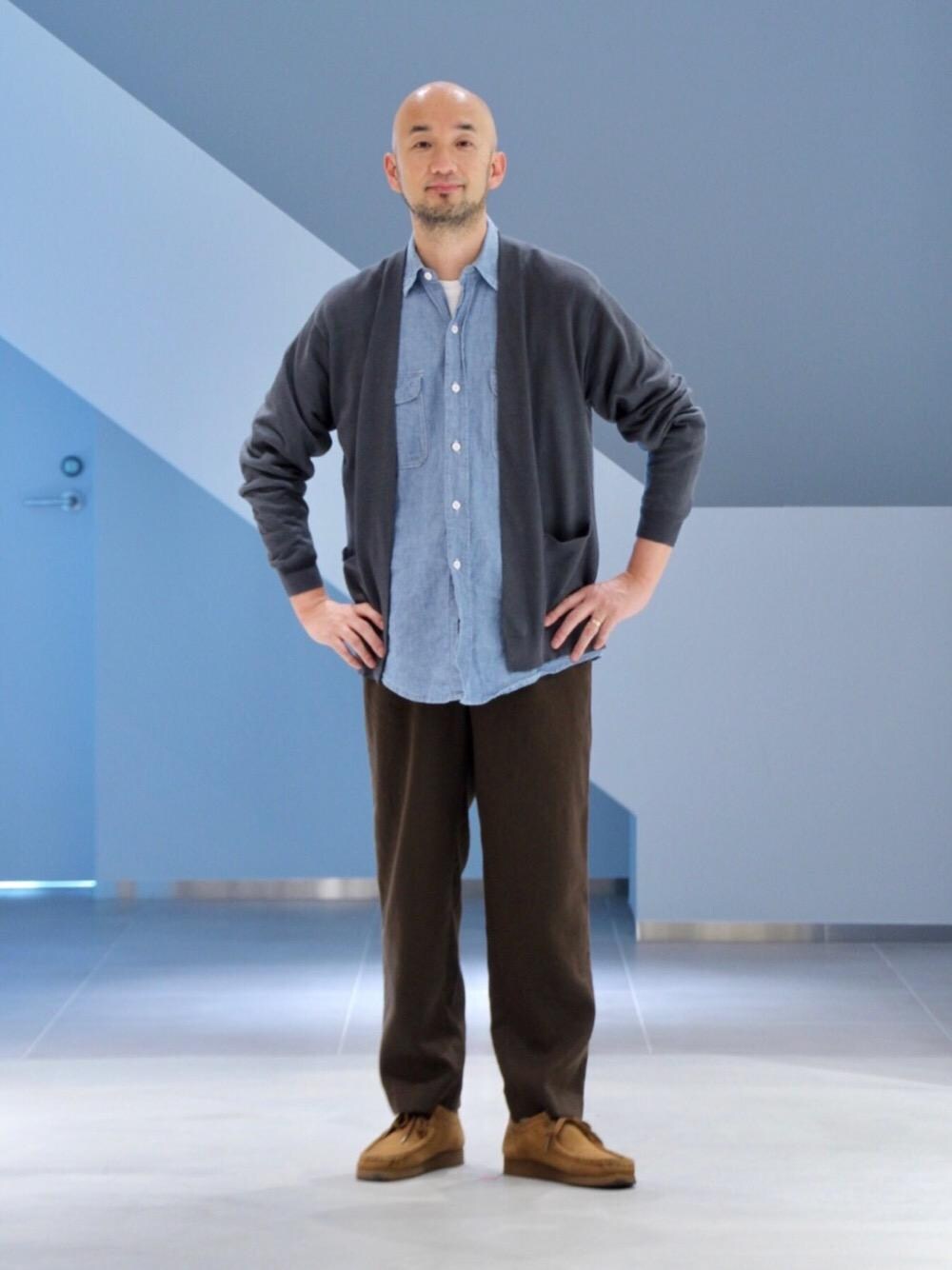 ドライなタッチでちょうど今の時期の羽織におすすめのカーディガンです。普段はMサイズを着ることが多いですが着丈を少し長くとりたかったのでLサイズを選びました。リネン素材ベースのボトムスとも親和性があってうまく馴染みます。
