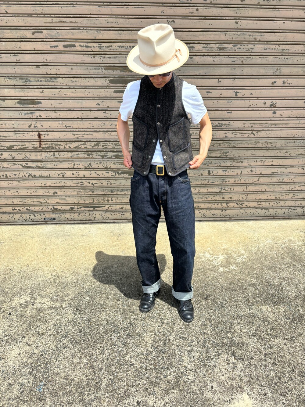 おはようございます😊 ビーバーハット、白Tブラウンズビーチ🏖️のベストを合わせたザ シンプルなスタイル ベスト以外は全て新品で購入しています^^ 映画タイタニックでディカプリオが着用していたオリジナルのベストになります🔥 #1950’sstyle #music is my life hat→beaver100xx vest→1920〜1940's brown'sbeach pants→drybones shoes→sanders
