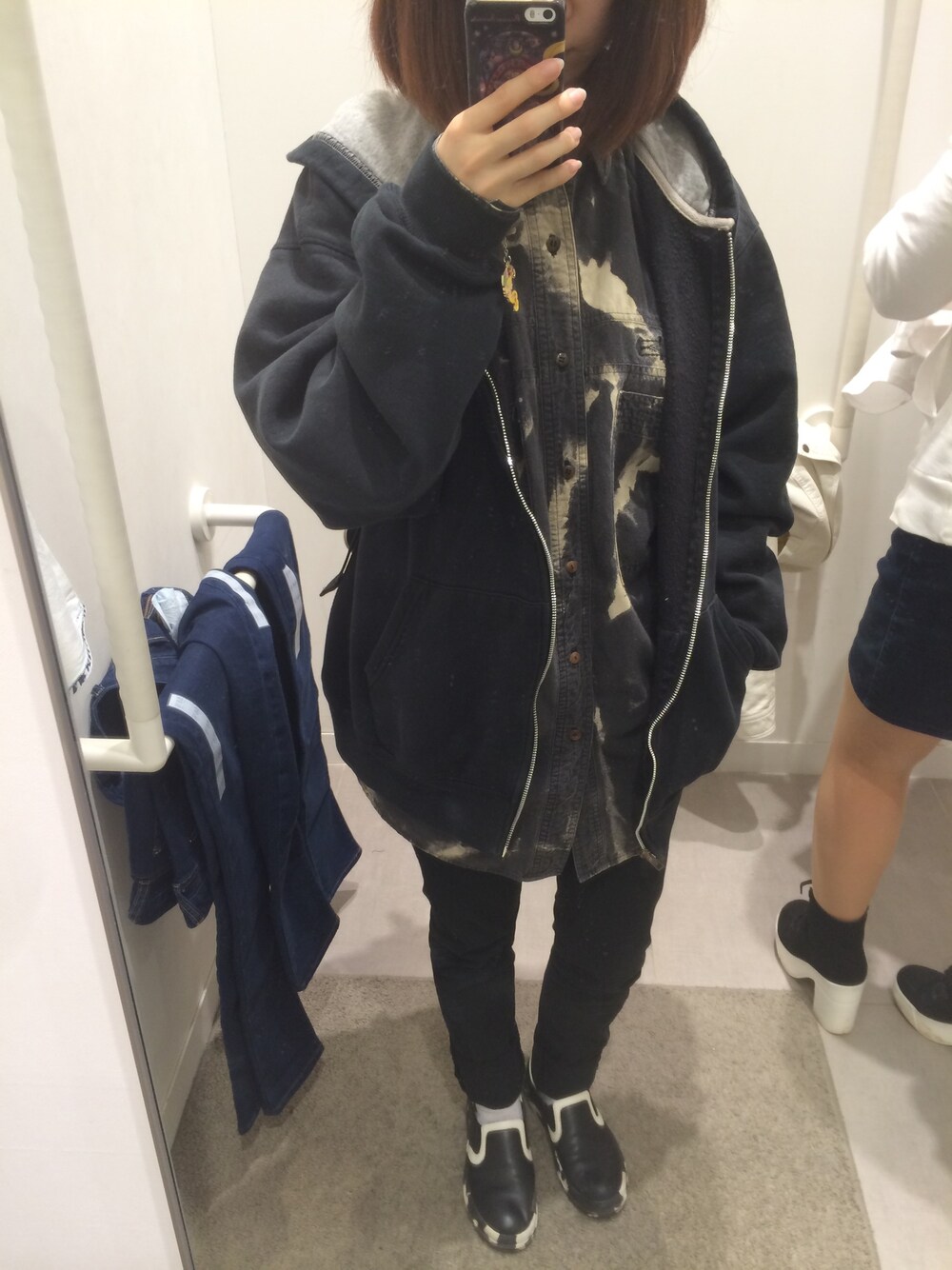 2015/03/21 ❂ 古着コーデ ❂ 黒スキニー : GU シャツ、パーカー : 古着 すごい好きな格好! 春近いのに真っ黒コーデ👻