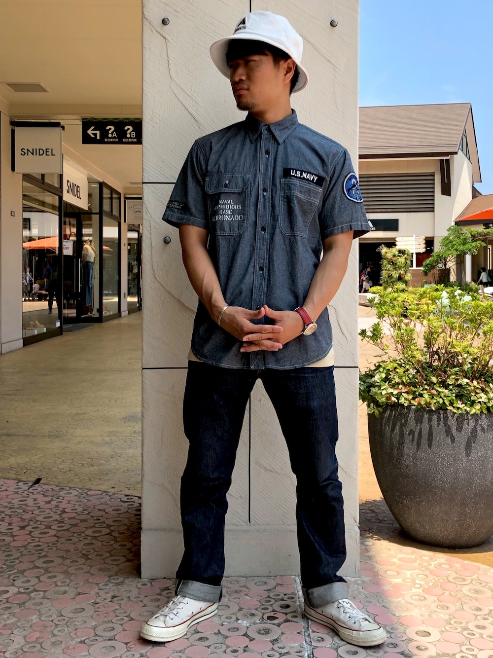 雰囲気の良いシャンブレーシャツを着て出かけたいですね〜。 ステッチが愛らしい! ワッペンもgood!!