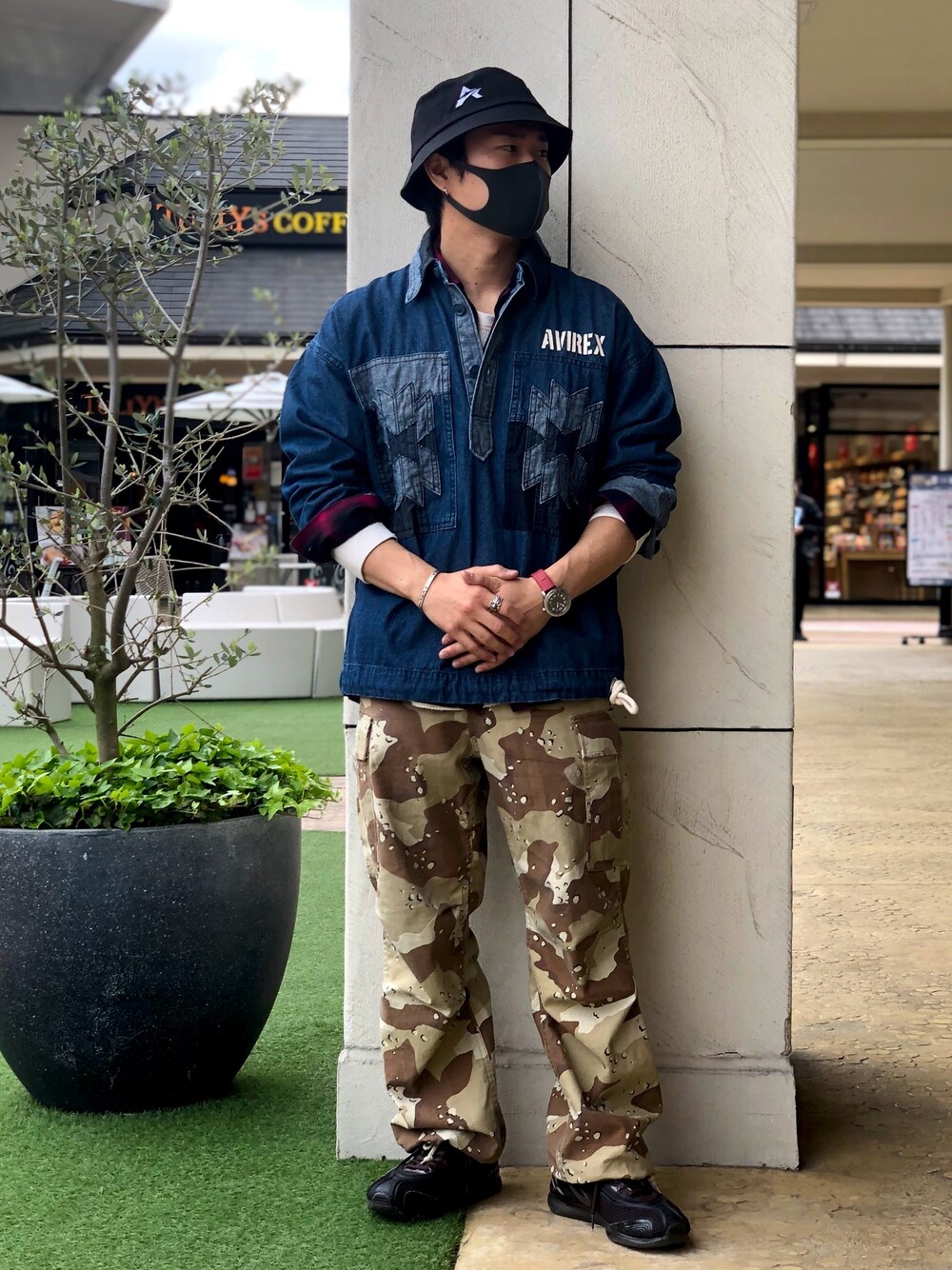 ワークとミリタリーの合わせもAVIREXならでは!! 柄のぶつけ合いも同じ強さならオールOKでは??笑