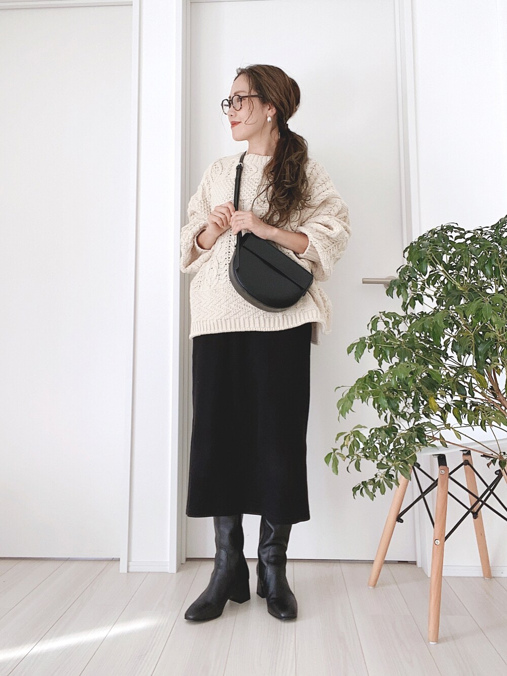モノトーン🖤 今年らしくロングブーツ合わせで🖤