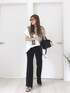 イロチ買いしたワイドフィットT 今回はホワイトでモノトーンコーデに☕️💕 ☑︎ GU ワイドフィットT ☑︎ UNIQLO イージーフレアパンツ