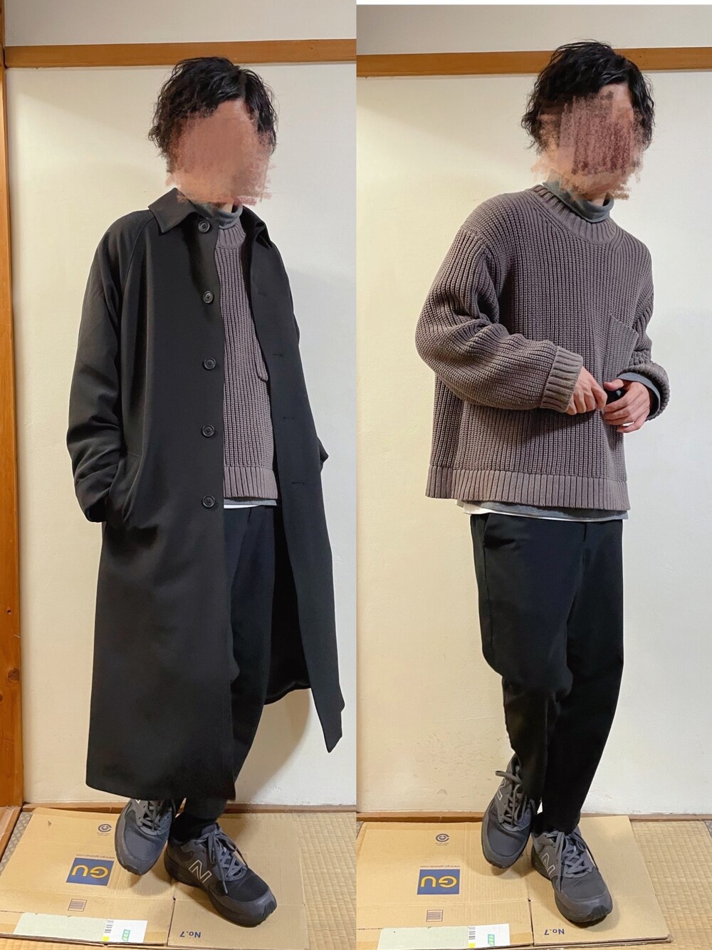 2021年1月19日 今日のコーデ! この中間色の感じが好きです! 中にはセカストで昔買ったグレーのタートルネック着てます! スニーカーもセーターと同じ色味にして統一感を出しました!