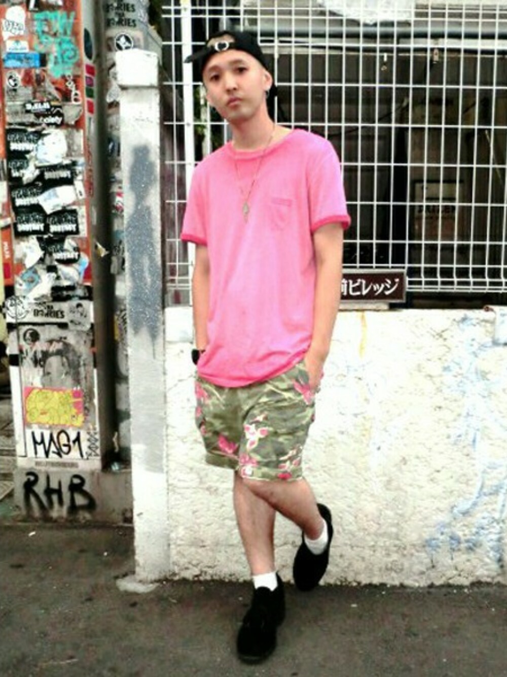 カモフラパンツに描かれたフラワーとTシャツのカラーを合わせました。 ウォッシュのかかったTシャツのリラックス感とカモフラがいい感じに似合います。