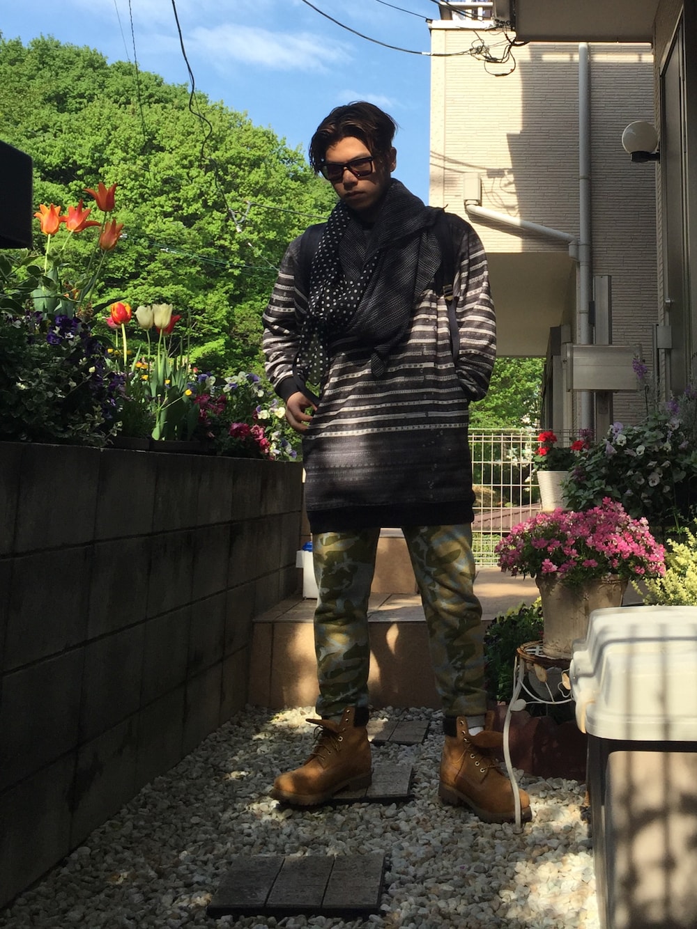 今日は学校で柄と柄で合わせたコーディネートチェックがあるのでこんな感じに♪ 柄最高だね(笑)