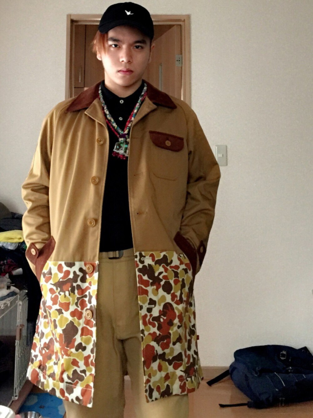 黒×ベージュのシンプルコーデ。 そこにハンドメイドのバンダナネックレスで色を差した。 コートはブラウンベースのダックハントカモがキャッチーで最高に可愛いですが、下に目線が行くので余計背が低く見えるのがネックですね(笑) そしてUniqlo Uのクライミングパンツ優秀過ぎます😱……w 程よくラフなシルエットにストレッチの効いてるイージーパンツをお求めでしたらオススメします! ※こちらで私が着用している、SMAPお洒落番長の草彅剛さんや嵐松本潤さん愛用モデル、PORTER CLASSICインスピレーションによるバンダナネックレス販売しております。 カラーの違いもございます。 気になった方はコメント是非是非お待ちしております( ◠‿◠ )