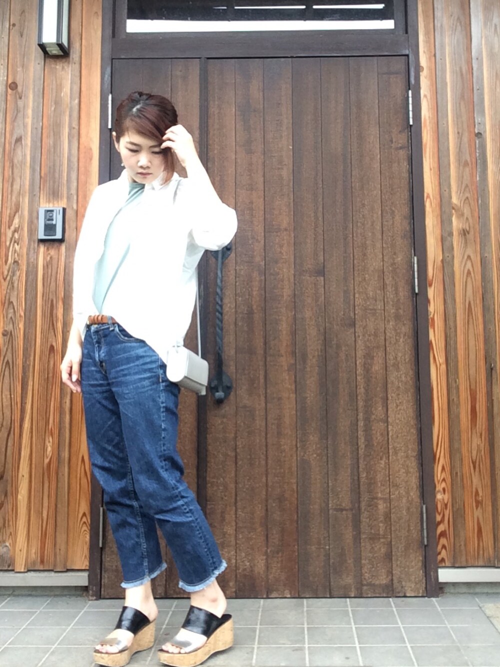 曇りなのでシャツを腕まくりスタイル👚✨ 白シャツ➕ジーンズ👖の時は インナーに色味を入れる🎶 もちろん パーソナルカラー🦋🦄