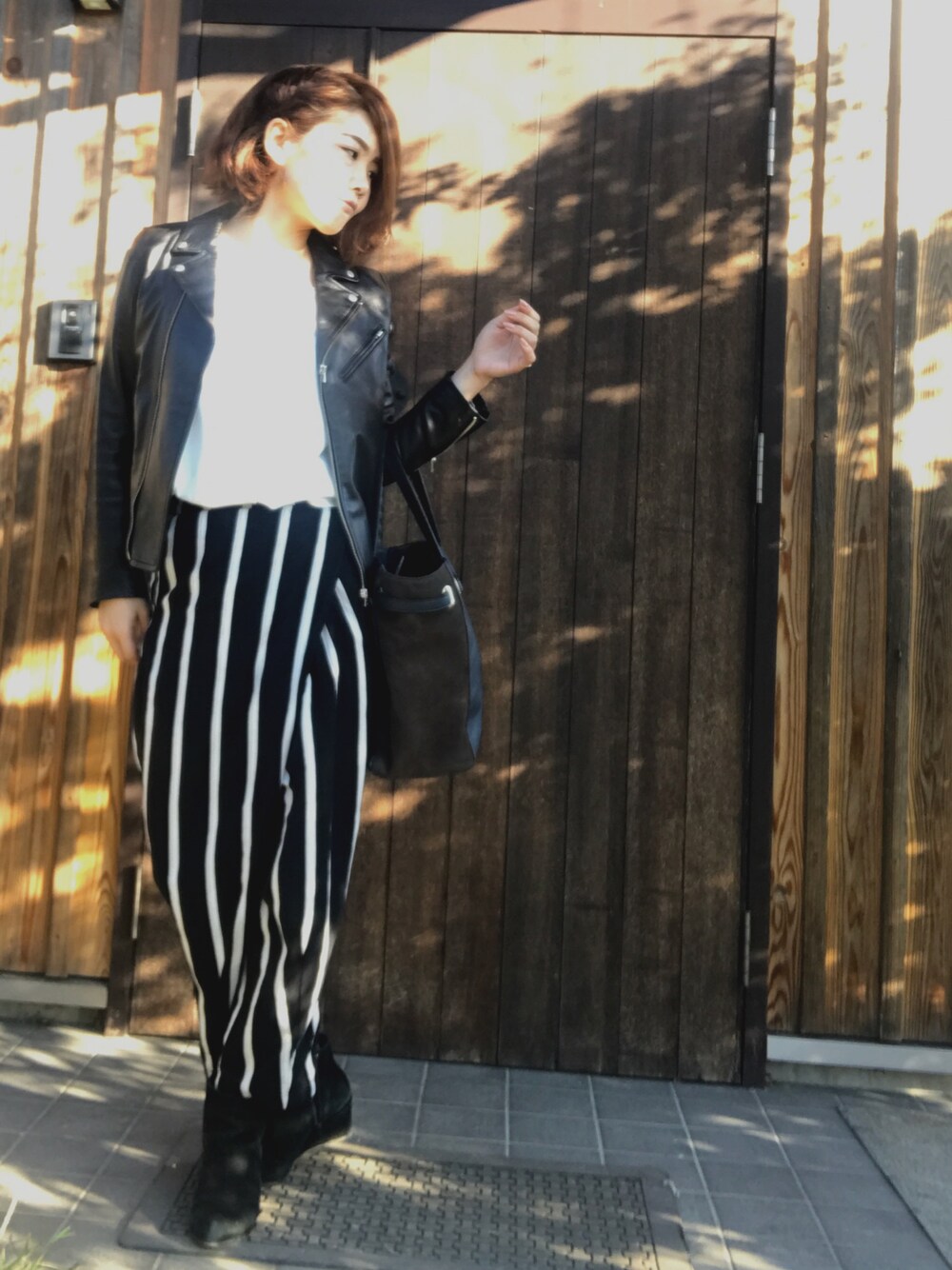 Tomomi のライダースジャケットを使ったコーディネート