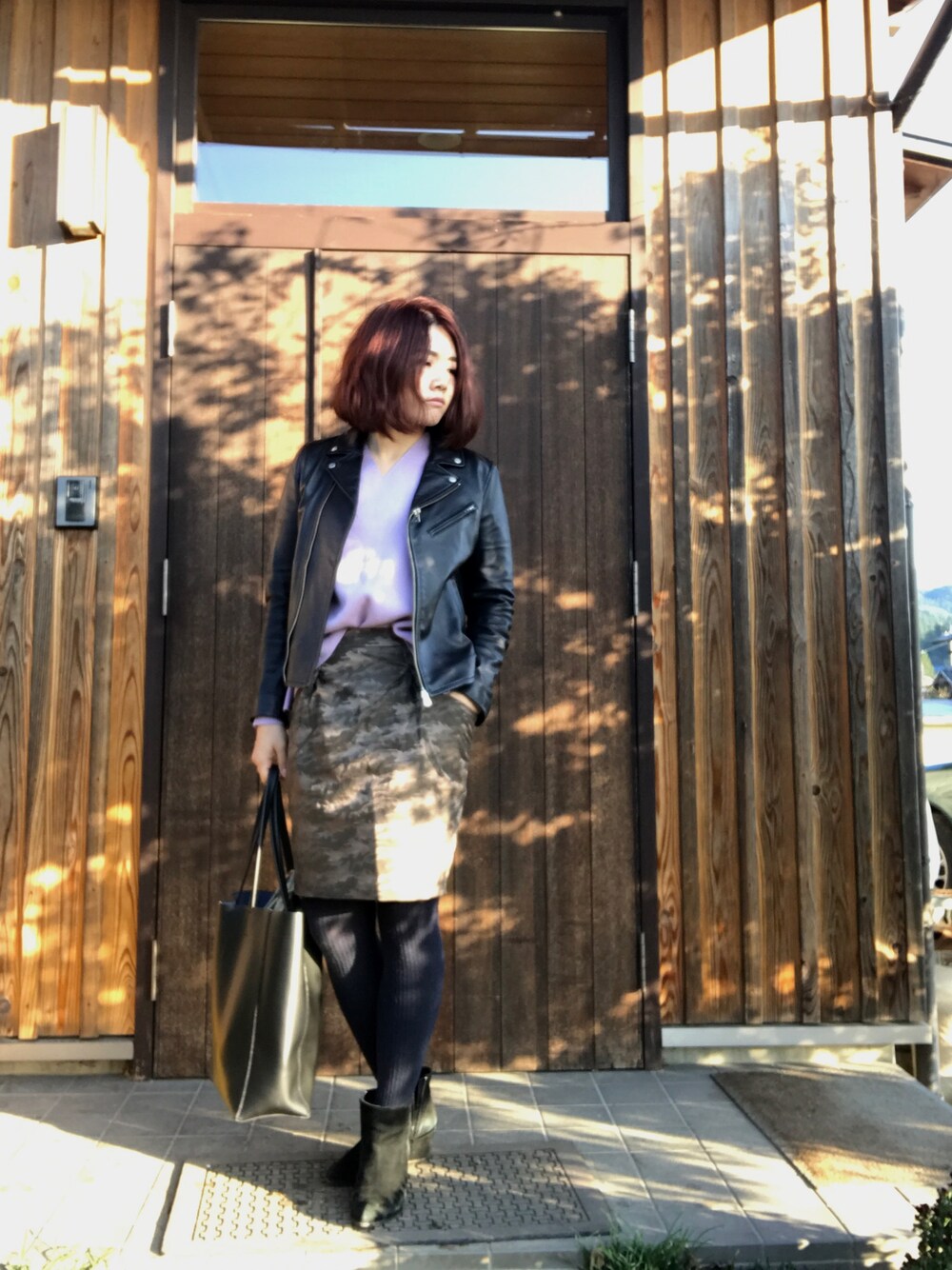 Tomomi のライダースジャケットを使ったコーディネート