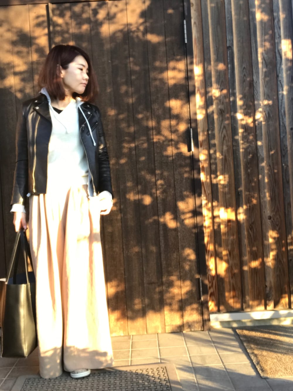 Tomomi のライダースジャケット「SUPP×UR RIDERS JACKET」を使ったコーディネート