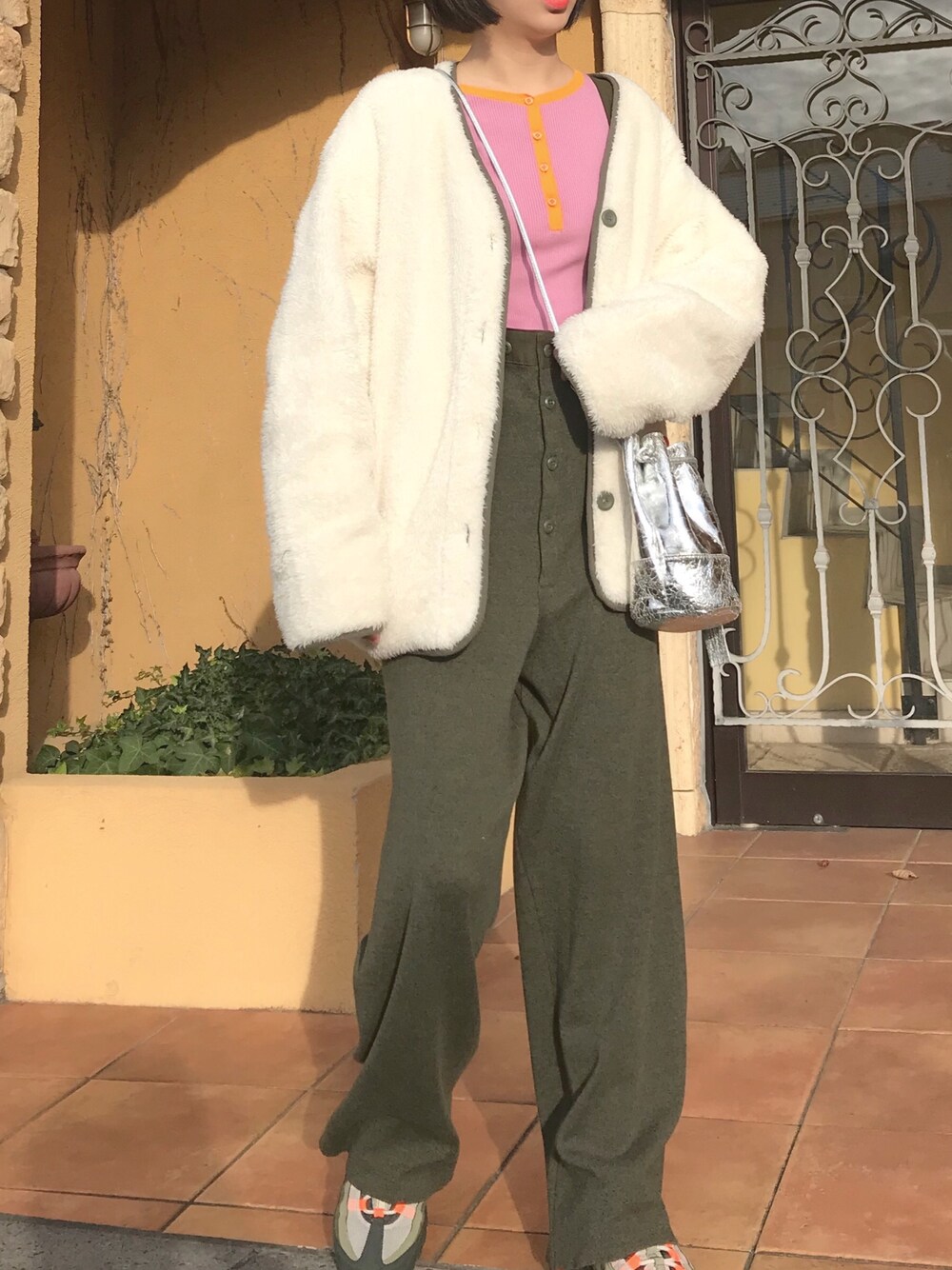 m.tのブルゾン「ボアキルトハーフブルゾン/リバーシブルノーカラーコート」を使ったコーディネート