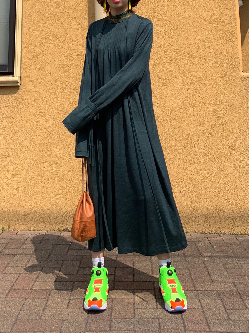 ohtaのワンピース 大人っぽくて好き♡ あえて蛍光のポンプ合わせてみた♪