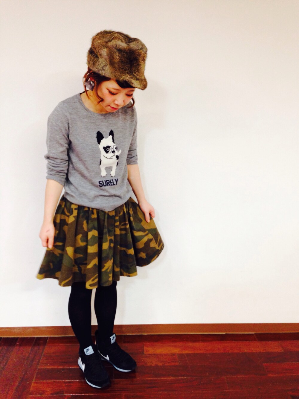 ファーキャップ mystic セーター OLIVE de OLIVE スカート ロニースコッチ スニーカー ナイキ