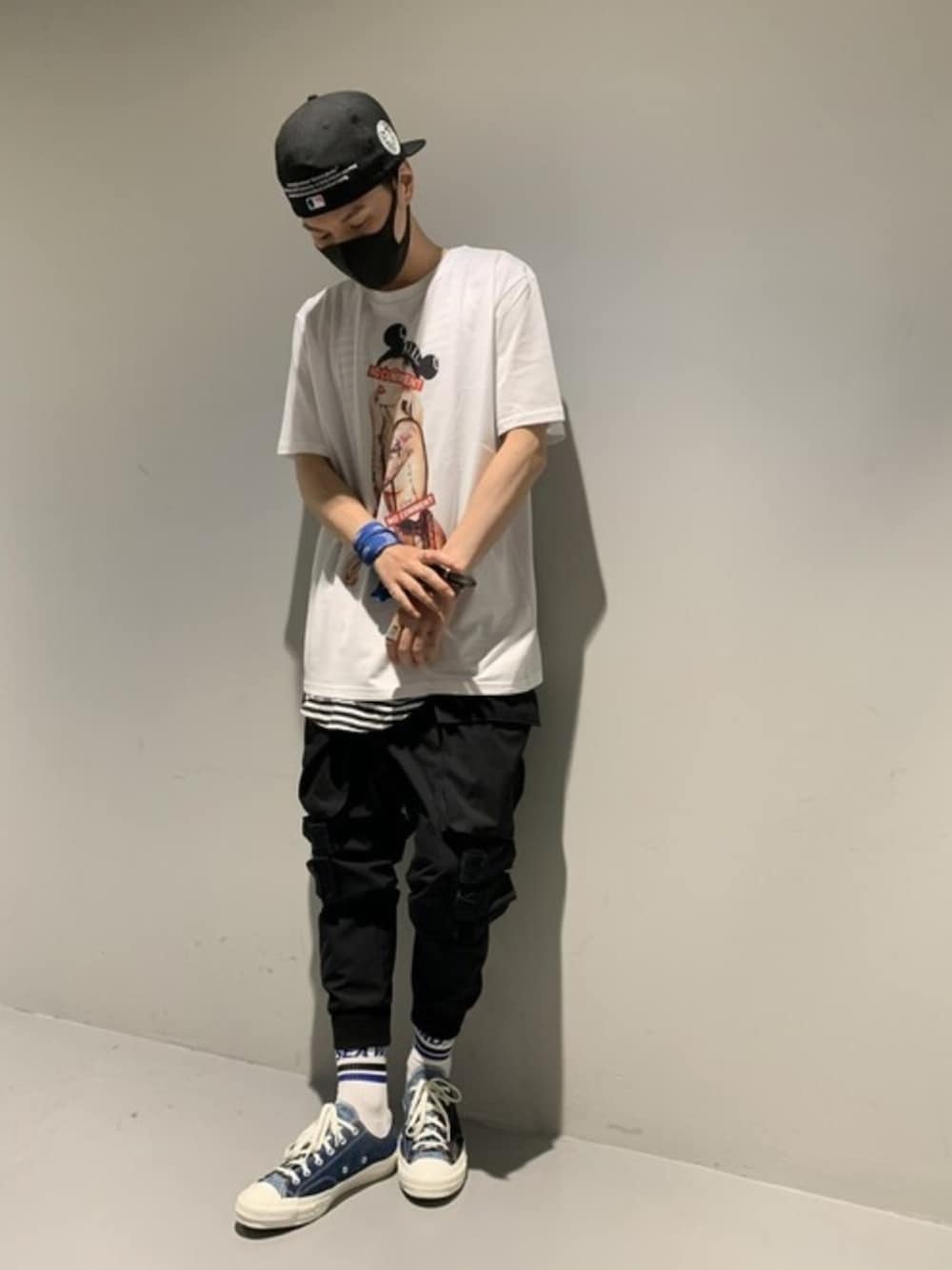 akihiro_okada(ROYAL FLASH なんばパークス店)のTシャツ/カットソー「NO COMMENT PARIS/ノーコメントパリ/TATOO Tシャツ」を使ったコーディネート
