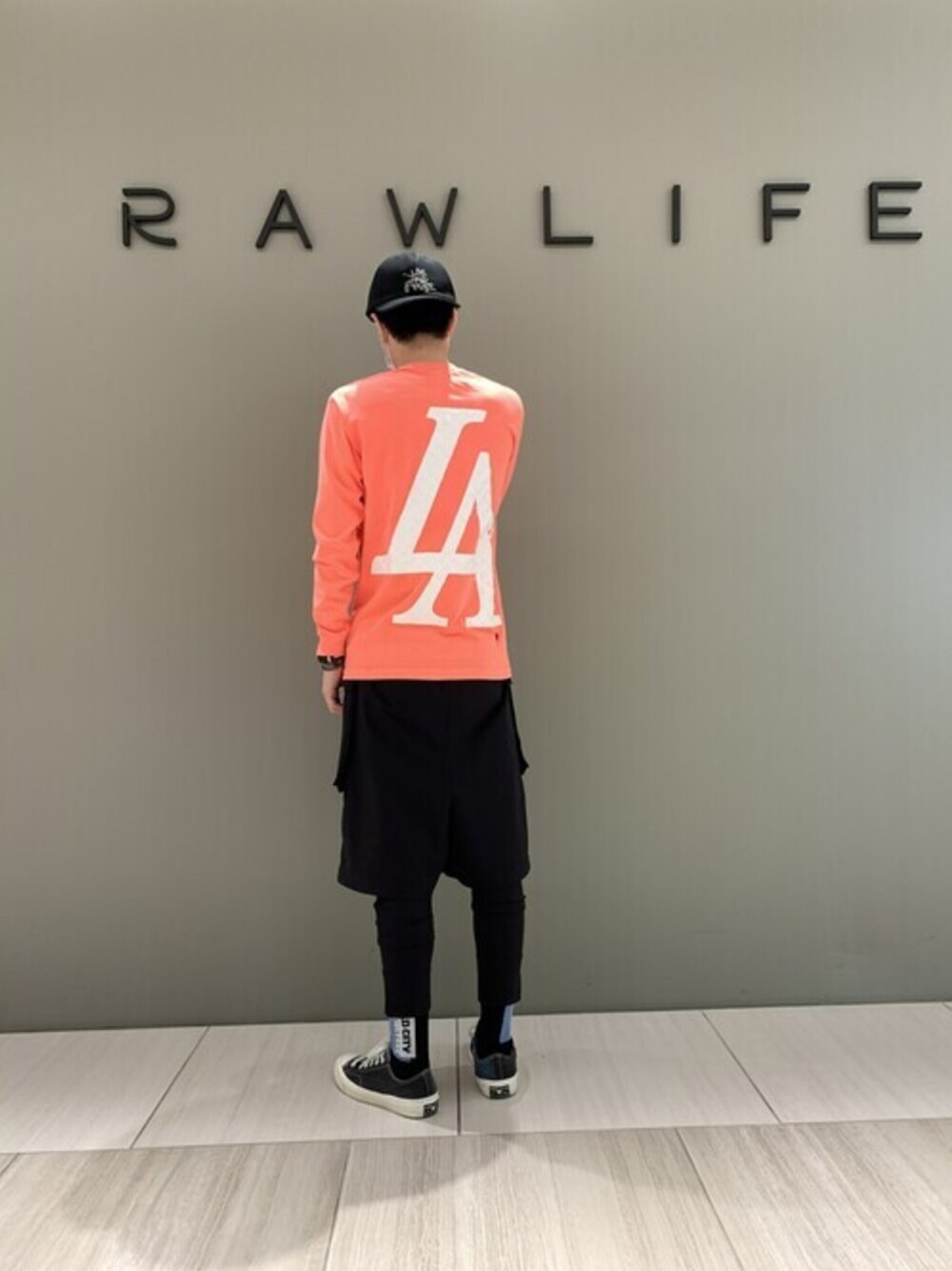 akihiro_okada(ROYAL FLASH なんばパークス店)のTシャツ/カットソー「STUD MUFFIN/スタッド マフィン/バックLAフォームプリントL/Sカットソー/114-02367」を使ったコーディネート