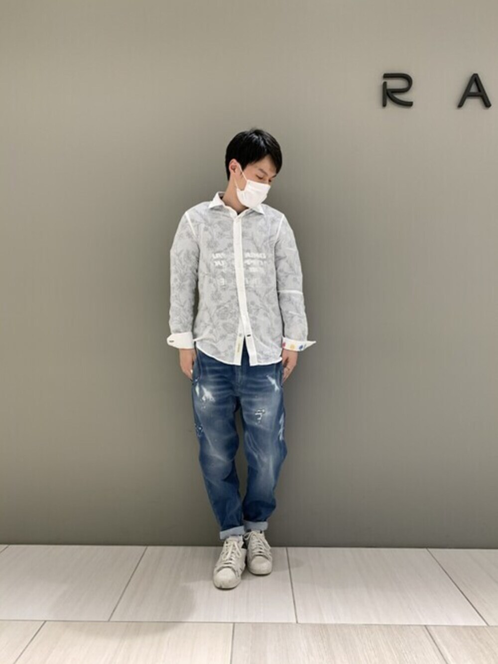 akihiro_okada(ROYAL FLASH なんばパークス店)のシャツ/ブラウス「GANESH/ガネーシュ/フラワーwht」を使ったコーディネート