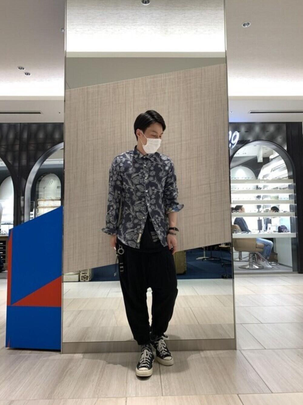 akihiro_okada(ROYAL FLASH なんばパークス店)のシャツ/ブラウス「GANESH/ガネーシュ/フラワーnavy」を使ったコーディネート