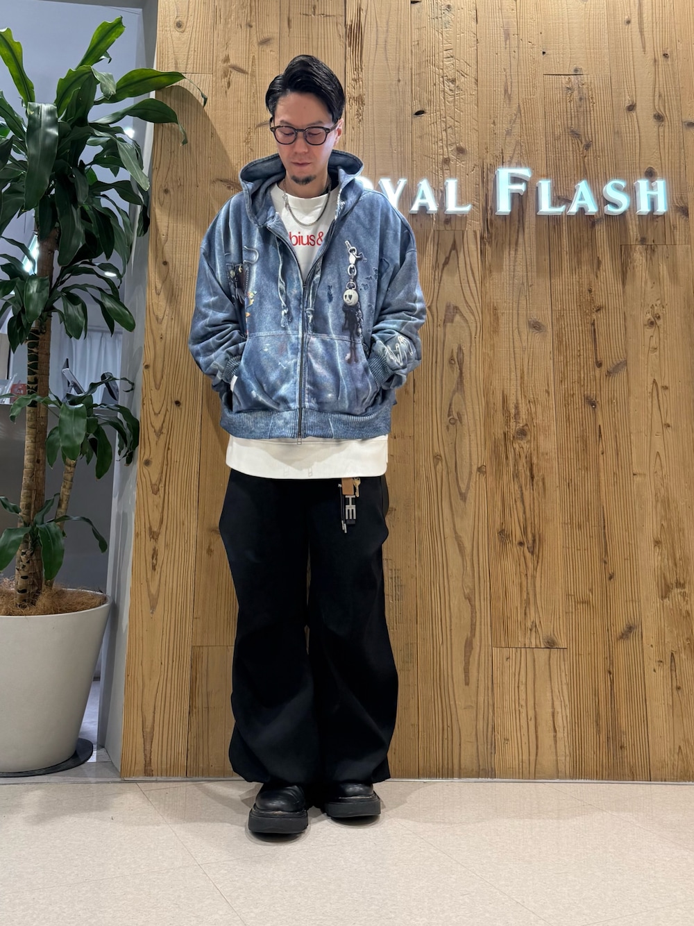 akihiro_okada(ROYAL FLASH なんばパークス店)のパーカー「TALKING ABOUT THE ABSTRACTION/トーキングアバウトジアブストラクション/別注SWEAT ACC PARKA」を使ったコーディネート