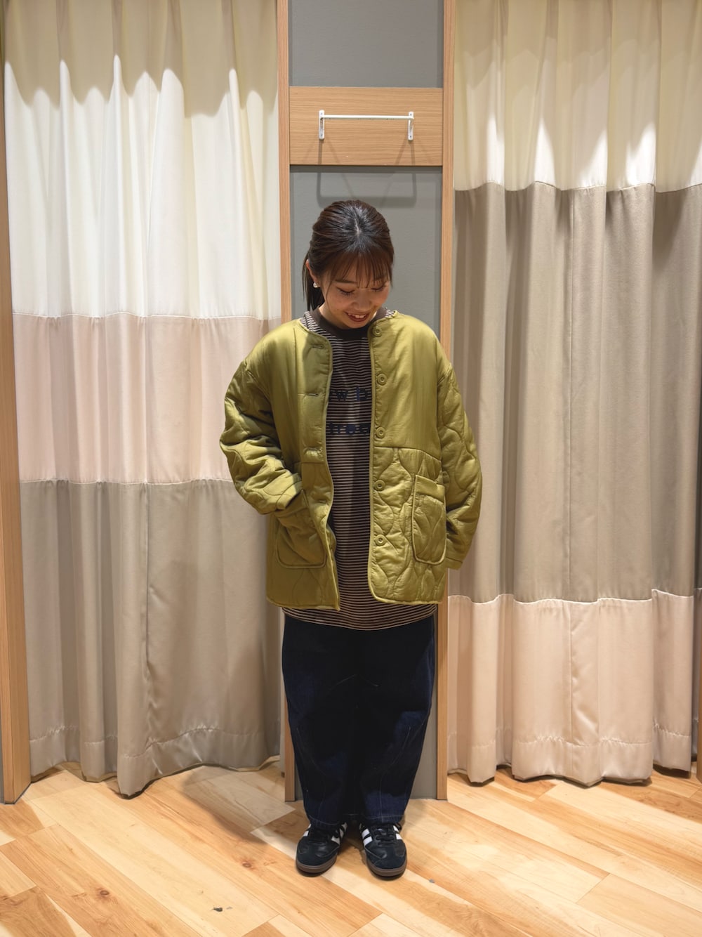 ロゴがカジュアルな柄アソートTシャツ👕 無地とボーダーの6色展開✨ ボリューム感のある袖とゆったりとしたロング丈でシルエットも完璧です🌵 キルティングのジャケットは中綿入りなのであたたかく、大活躍まちがいなしのアイテム🧚♂️ ボトムスはカーブシルエットのデニムパンツ👖 ブルーには花柄の刺繍が入っています🌼 *身長150cm Sサイズ着用 Mサイズを着用バージョンも投稿しているので参考にしてみてくださいね👀 それぞれのアイテムのお色違いも着用しているので是非ご覧ください👧🏻