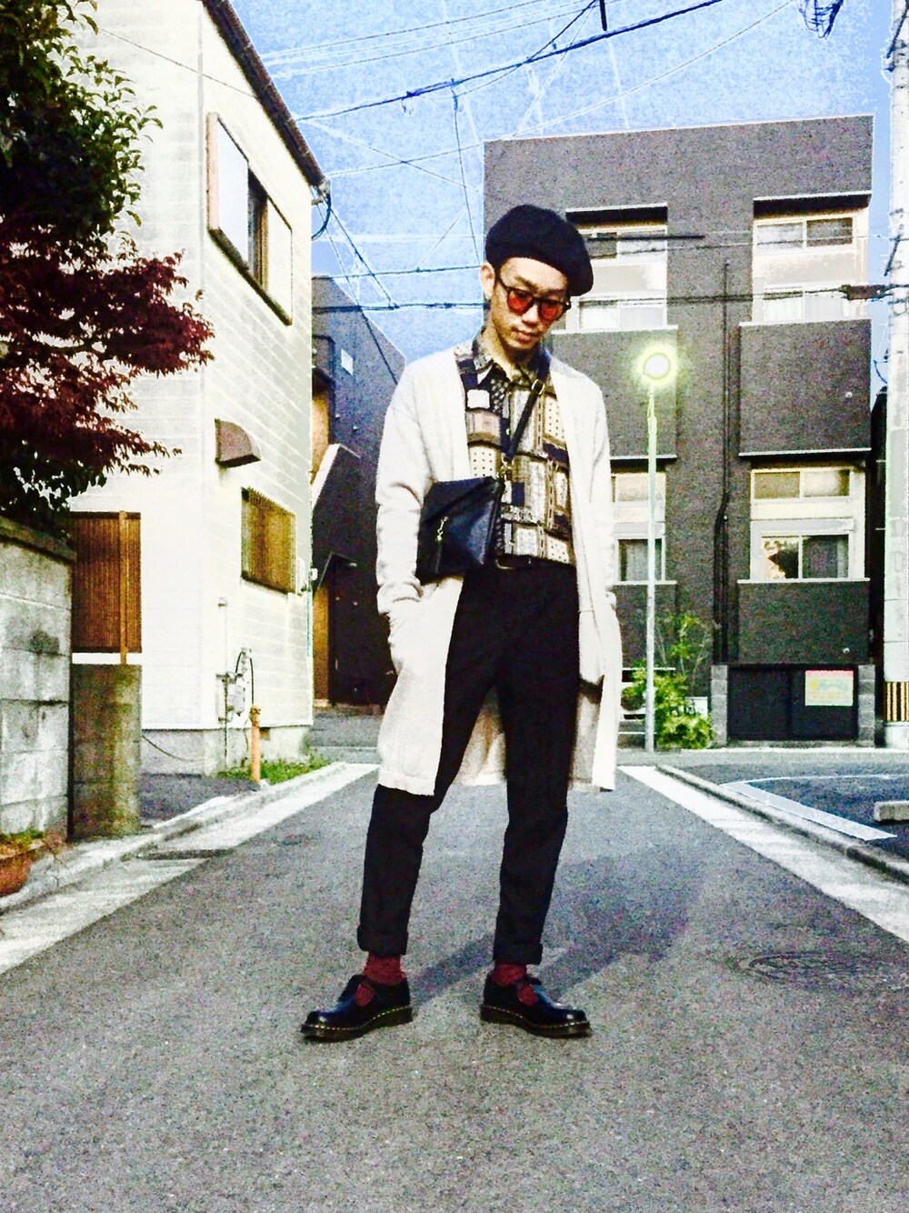 today's code こんばんは、今日は福岡は晴れてポカポカの気持ちいい日でしたね🍀 ゆっちさんが教えてくれた博多阪急の2Fに新しくできたメンズフロアに行ってまいりました ディーゼル以外は基本モードな雰囲気で変わったデザインの服のあるブランドがたくさんでした✨ 1番欲しかったジャケットは198,000円でした あきらめがつきました さて、今日のコーデは先日ZARAで購入したスラックスをベースにコーディネートしました🙋♂️ このスラックスがまたスキニーのようにフィットしてくれて最高のシルエット、しかもサイドに赤の縫合糸が使ってあるので寄るとまたまた可愛い✨ イキってカッコつけてるがために伝えられないのが悔しいです それでもカッコつけます 笑 そして古着の総柄シャツをタックイン、出しててもありでしたが今日はインで♫ 全体的に色が暗かったのでベージュ寄りのグレーのカーディガンを羽織りまして、差し色に靴下でワインレッドを入れました✌️ 靴はおニューでお初のDr.Martinです、最高に可愛いです靴下見せて遊ぶやつ買いました、たまらんです🙈 で、小物を黒でまとめてモード系Vシルエットコーデ完成✨ ポイントはモノトーンになりがちなモード系ですが総柄やワインレッドを取り入れてベーシックなモード系と差別化を図っているところです🙆♂️ 誰かしらの参考になれれば幸いです☺ #