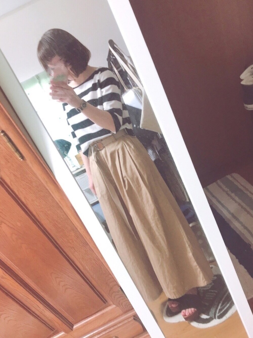 シンプルに。 ショート丈で 母が着らんトップス もらいました笑 袴パンツとバランスよき。 またLIVE行ってきます← 田舎から大阪は遠い、、、 安定の底上げサンダル笑 今日は暑い〜🙌 バス到着の 瞬間の風!笑(足もと) ご覧いただき ありがとうございます😊♡ たまにのぞきに 行きます!