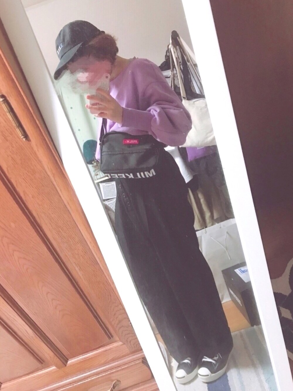 力尽きて寝ましたが10/17のコーデ。 前の職場のパートさんと ランチ🍴♡ 食後のワッフル半額 幸せでした💕 秋でもパープル推し笑 ボリューム袖かわゆい。