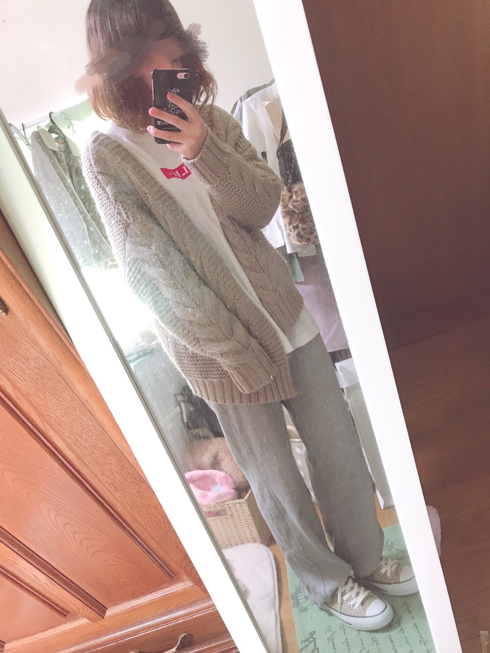 ユズルのカーディガン/ボレロ「ローゲージケーブルニットカーディガン」を使ったコーディネート