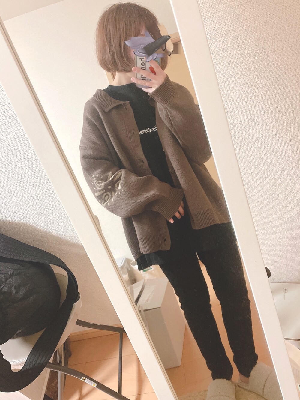 仕事帰りに受け取りへ🤍 今回のカーディガンも 可愛すぎる🥰 ブラックもあって悩んだけど ブラウンにして正解🤎! 襟付きカーディガンは初だな〜 後ろのレザータグもかわいい