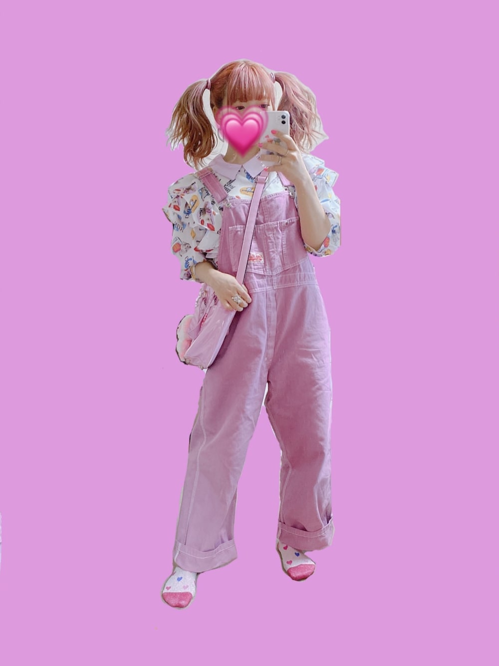 超お気に入りコーデ🐱 ブラウスの可愛さと サロペの可愛さのいいとこ取り💘 ブラウスのフリルが大きめだから 全体的にカジュアルアイテム合わせで バランスとってみた サロペの後ろにぺぺちゃん付いてて それも可愛い🐼(見えん)