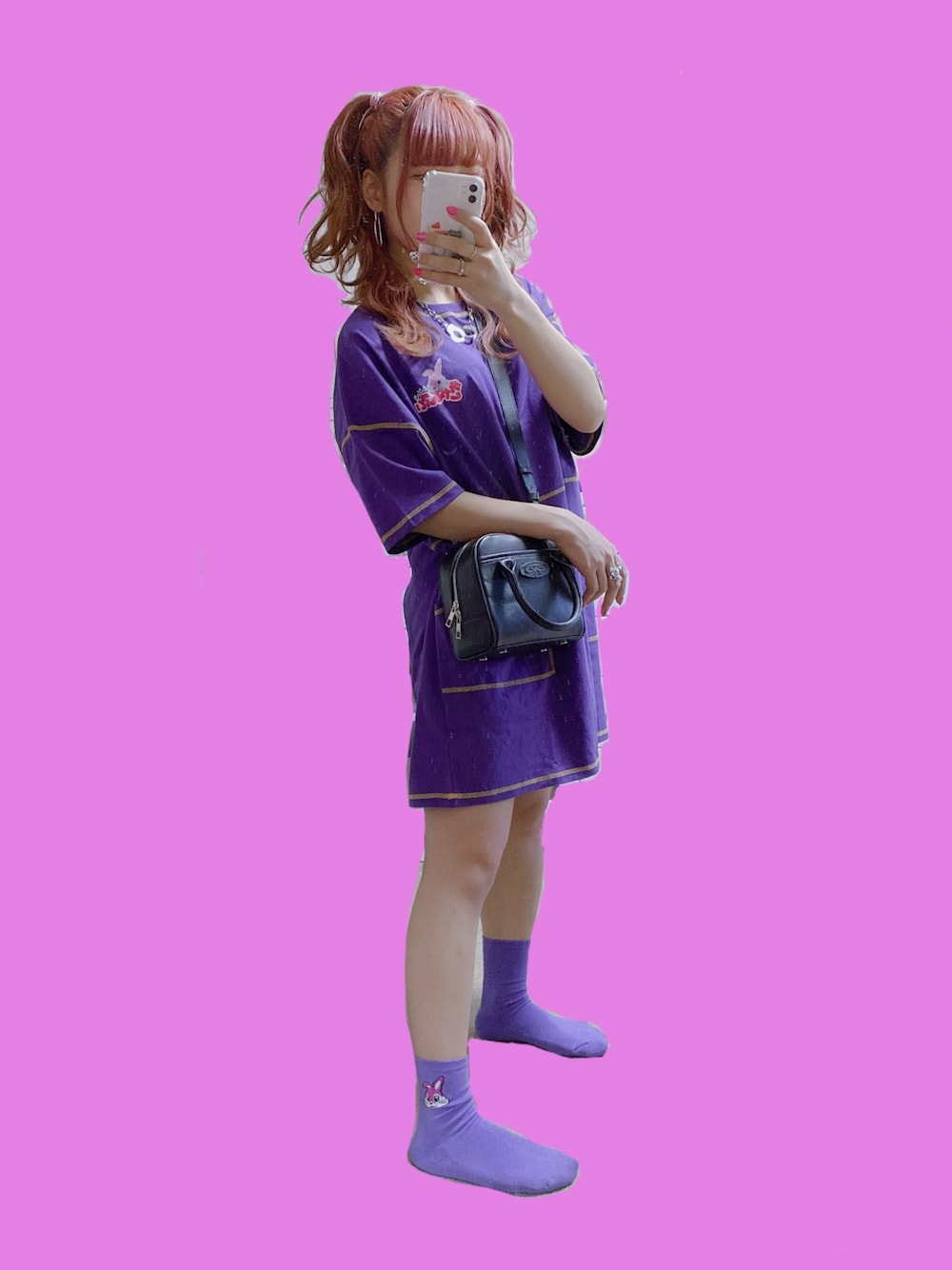 ソックスとお揃いデザイン🐰💜 これもセットアップって言うんかな? パープルにイエローのステッチも 「とうきょうきゃんでぃ」ってロゴの デザインもめちゃくちゃ可愛い。 背面にも大きくプリントされてて最強🥺 ソックスも左右で違うデザインで可愛い