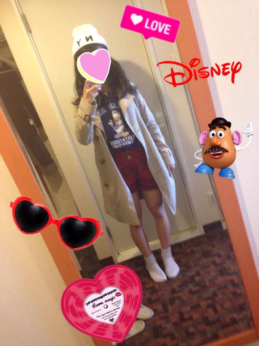 今日はディズニーランド🐭💕 今日はドナルドのパーカーでディズニー気分に浸りまくり🌟笑 トレンチコートなので寒くないです😉笑 この前買ったニット帽、やっぱ買ってよかった💕
