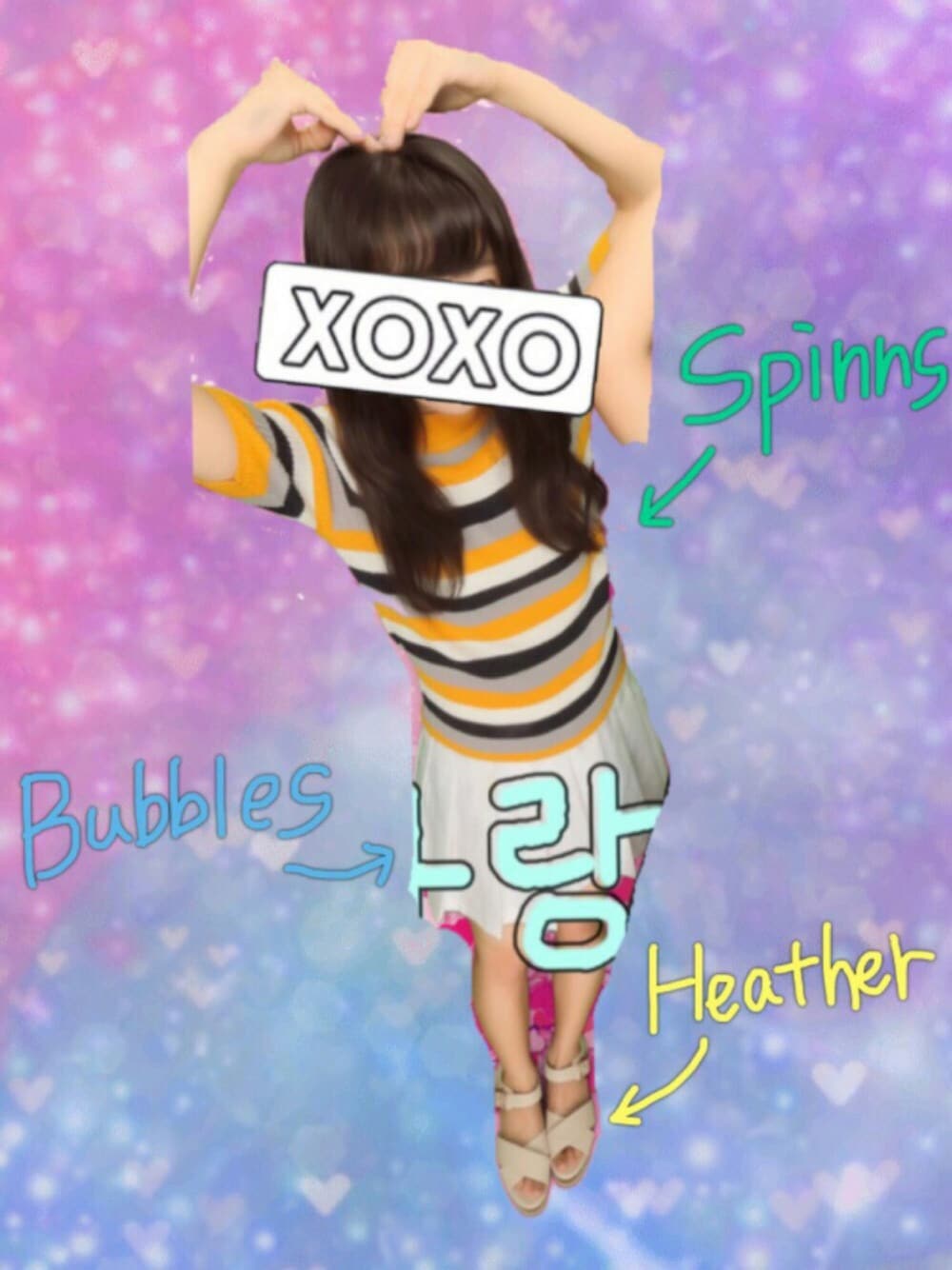 〈0918〉 昨日のコーデ撮り忘れたのでプリクラで! いつもと加工の感じ違くて違和感(笑) ちょっと韓国意識……? ちなみに、落書きは사랑해です😉💗