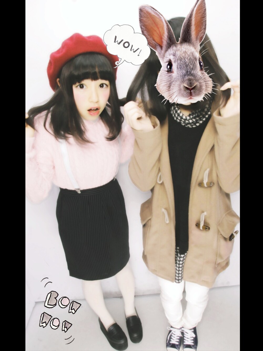 ベレー帽 : studio CLIP スカート : 古着屋で500円 サスペンダー : WEGO タイツ : ? ピックアップタグがピンクだったので、ピンクニットを使って、他を白黒でまとめた甘すぎないコーデ。 見えにくいけど、タイトスカートは黒地に白のストライプで、ピンクニットの下に丸えりブラウス着用。