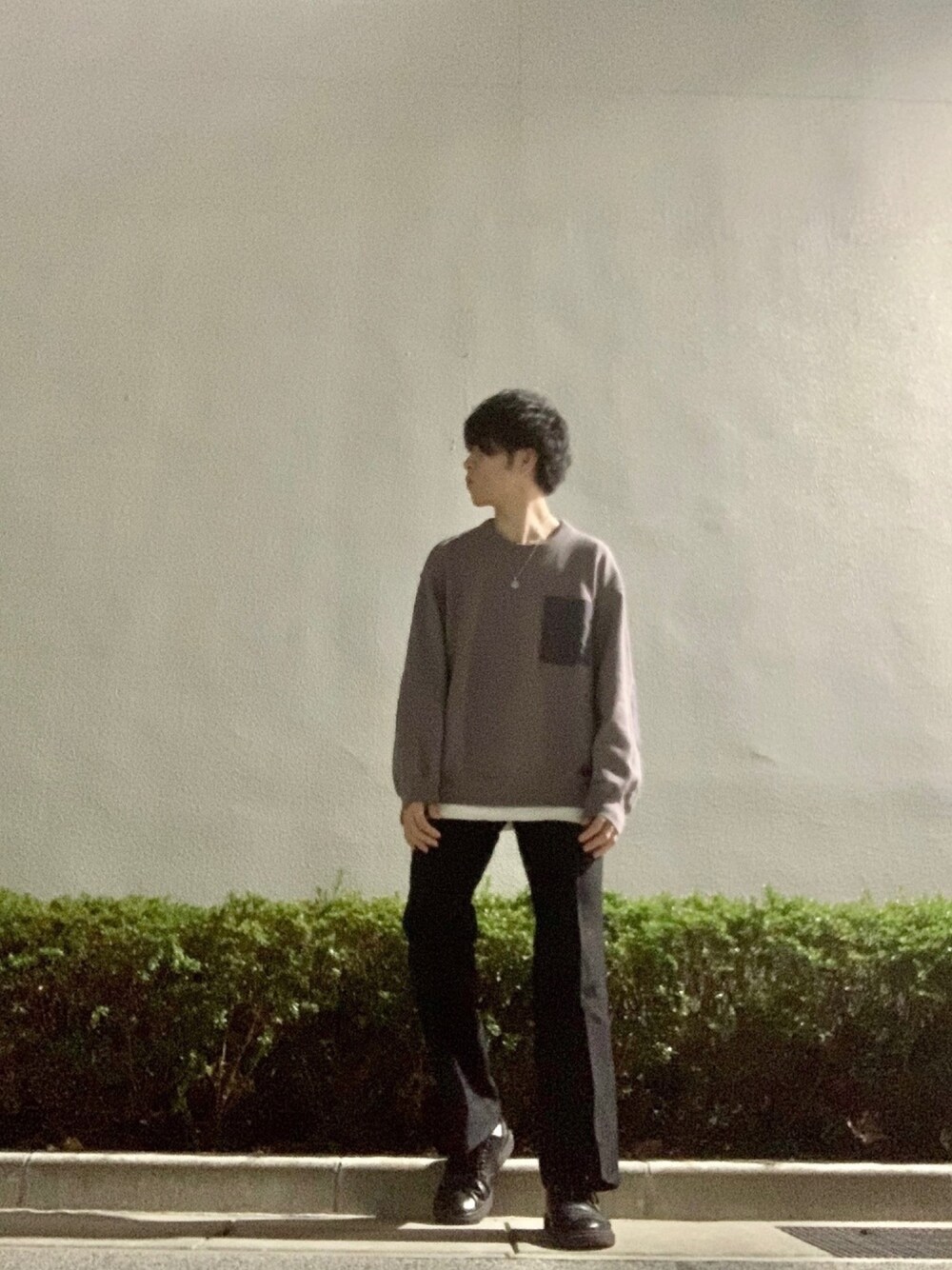 いつもご回覧 いいね お気に入りありがとうございます! 【春夏モノトーンコーデ!】 グレー×ホワイト×ブラック スウェット×フレアスラックス ・グレーのスウェットでカジュアルに! ・白のロンTをレイヤードに清潔感とメリハリを! ・シンプルになりすぎるのでアクセサリーでアクセントを! ・黒のフレアスラックスでトレンドスタイルに! ・黒の革靴で引き締め! このコーデがいい、役に立つと思ったらいいね、お気に入りお願いします🙇🏻♂️ 参考になると思ったらフォローもぜひ! コメントもお待ちしております😁 size ↓のタグにあります!